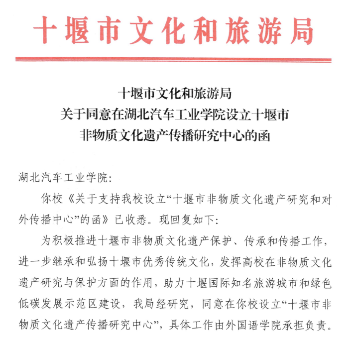 11月27日,十堰市文化和旅游局批准同意304am永利集团设立“十堰市非物质文化遗产传播研究中心”,具体工作由304am永利集团承担负责。